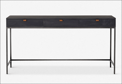 Keep your style grounded (and super organized) with this tall wooden writing desk. This home office desk features elements of mid-century aesthetics and a mixed material construction pairing solid poplar with a slim iron base and top-grain leather drawer pulls.