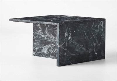 Exuberant and rich with active veining, fantasy black marble squares up into a sculptural T for an iconic side table by Studio Anansi. Its linear design and honed finish elevates the marble's natural tones and veining with a matte, velvety appearance. CB2 exclusive.